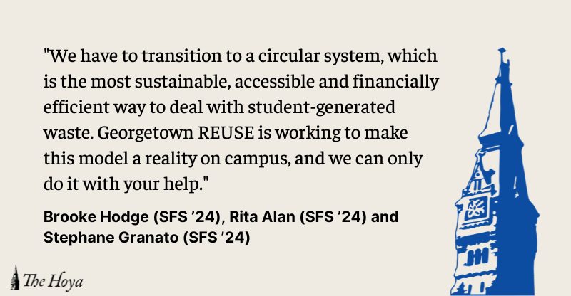 “Various student groups, such as Georgetown REUSE, will be tabling in Copley Formal Lounge—the event venue—to share sustainable waste management solutions like purchasing secondhand clothing. . . . Affordability in sustainability is the underlying question of this show made by and for college students. It is a common misconception that sustainability is prohibitively expensive. “Many people are used to going to SHEIN and buying five tops that they are going to wear twice,” Dovel said, citing their low quality and price. “They don’t really think about where their clothing is coming from, where it goes.” Ultimately, the goal of the event is to inspire attendees to be more conscious of their purchasing choices.”