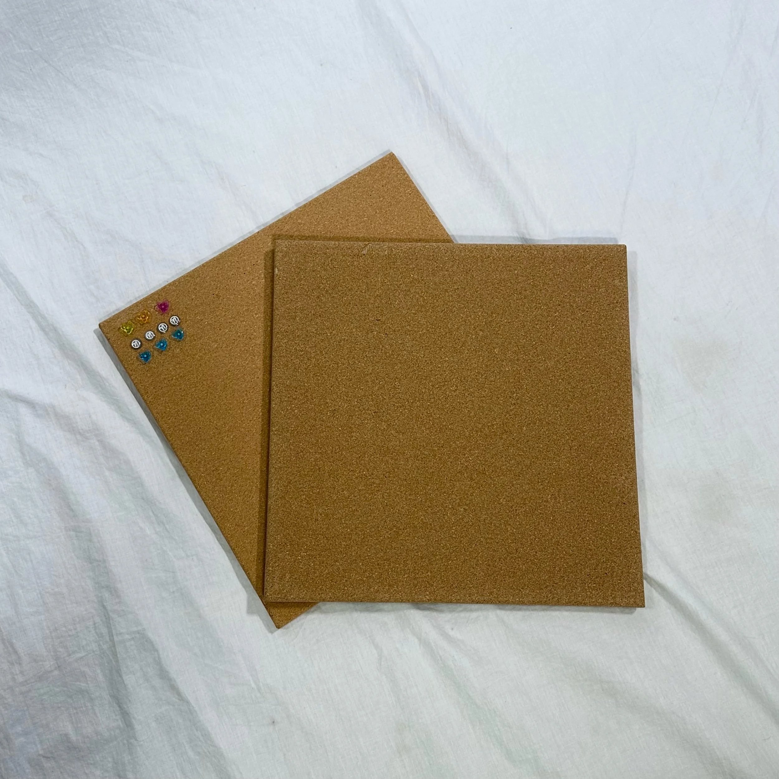 Shop Online › Set of 2 Square Cork Boards with 10 Assorted Push-Pins Image 1 of 2 Image 2 of 2 Set of 2 Square Cork Boards with 10 Assorted Push-Pins $4.00 Original Price: $16.00 Add To Cart Added! Original Price: $16.00